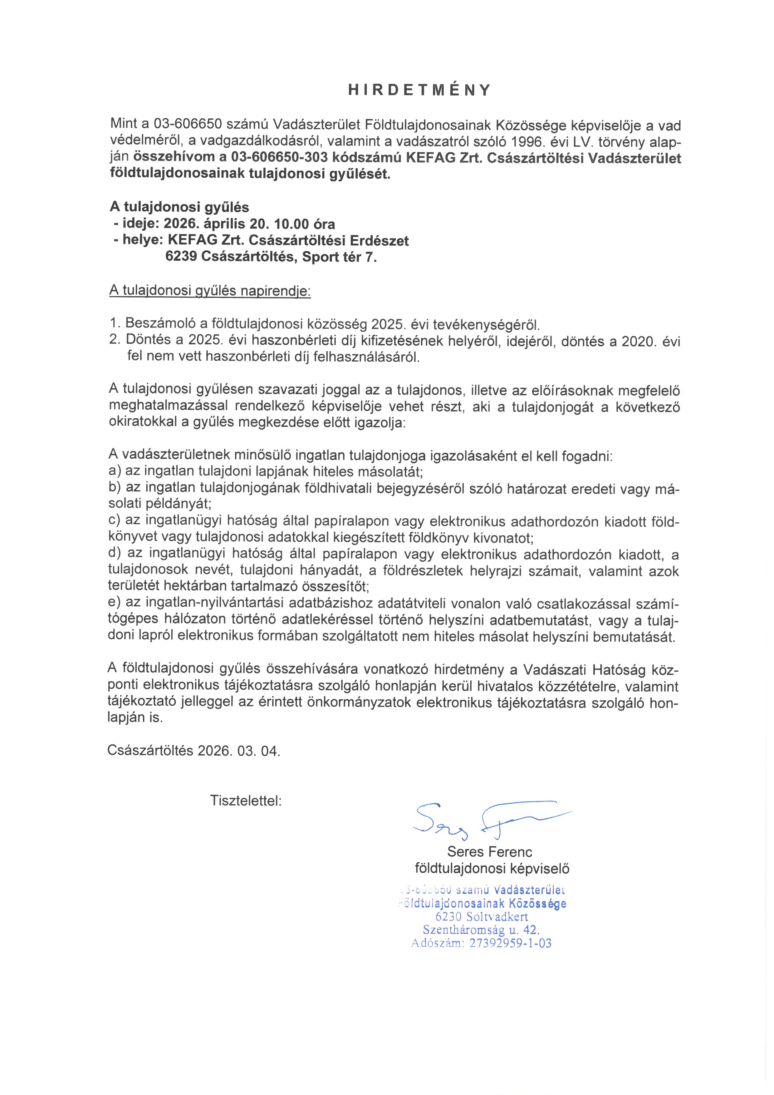 Felhívjuk azon ebtulajdonosok figyelmét, akik adatszolgáltatási kötelezettségüknek 2025. szeptember 15. napjáig nem tettek eleget, hogy november 30. napjáig küldjék meg a Polgármesteri Hivatal részére ebenként a mellékelt ebösszeíró nyomtatványt. Az ebösszeíró adatlap korábban valamennyi ingatlanba kiküldésre került a júliusi Hírmondóval együtt, de megtalálható a www. csaszartoltes.hu weboldalon valamint a Polgármesteri Hivatal folyosóján kihelyezett gyűjtődoboz mellett is.