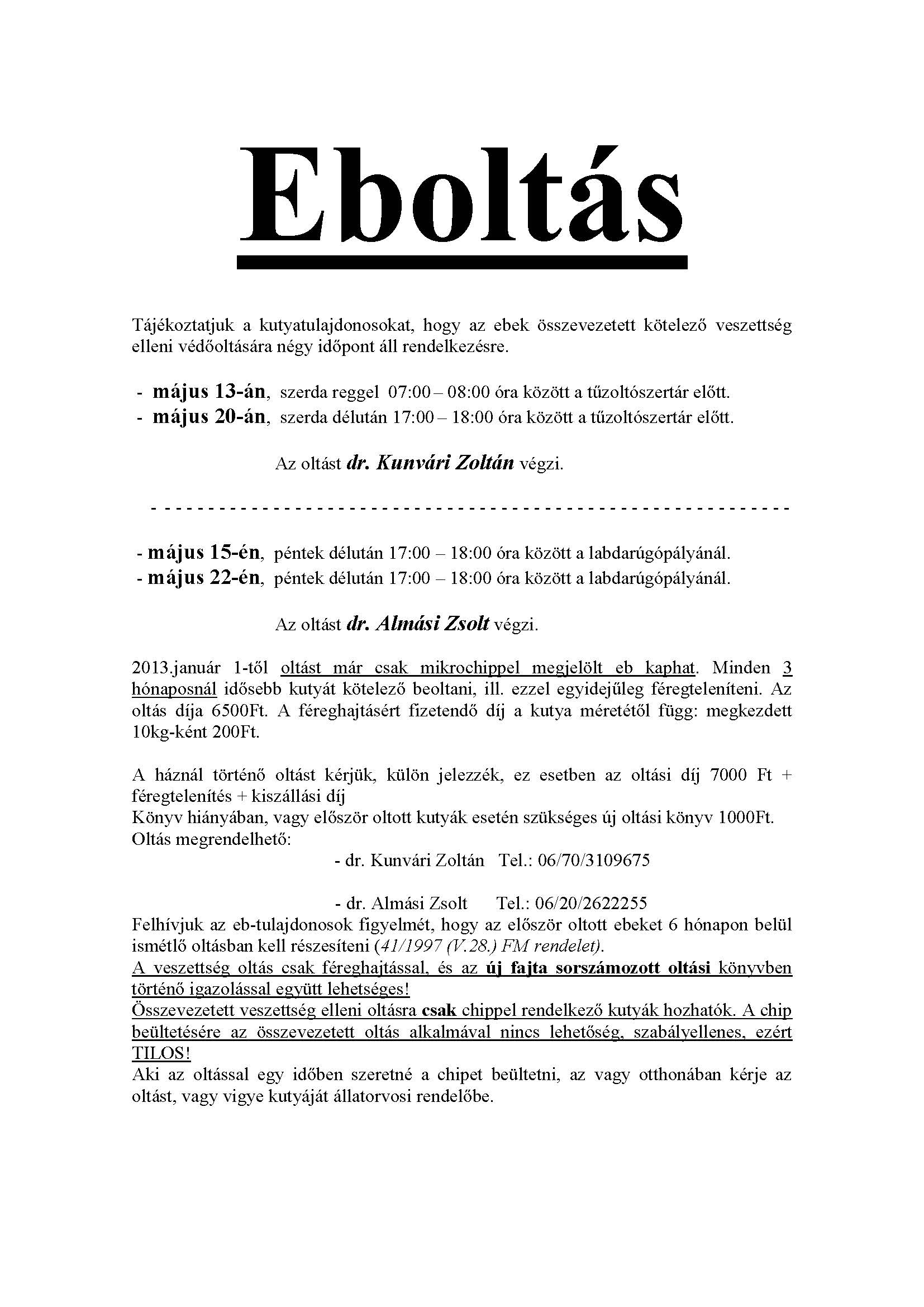 Tisztelt Ebtartók, Ebtulajdonosok!